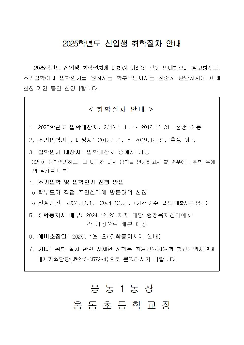 [안내]2025학년도 신입생 취학절차 안내