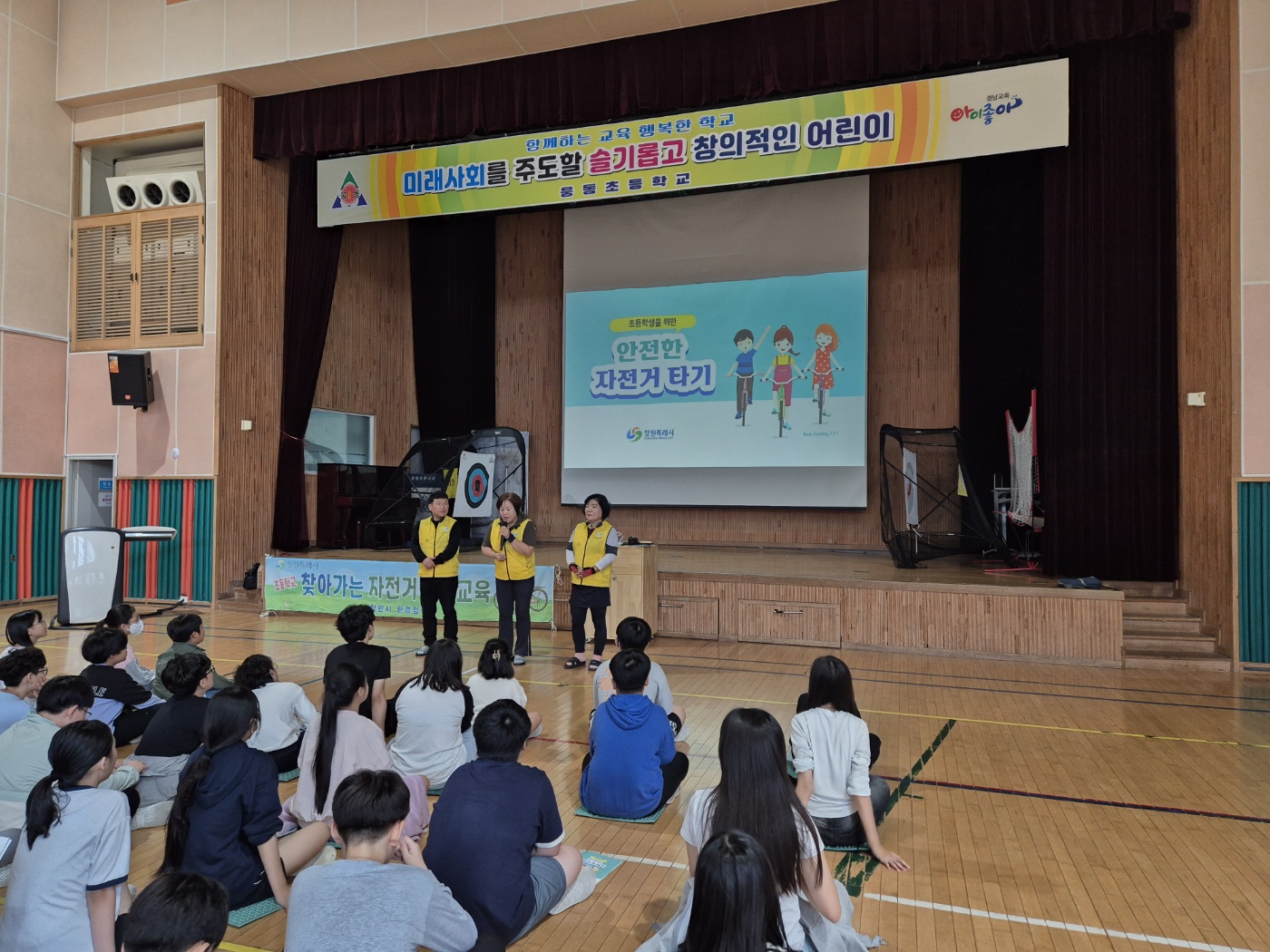 안전한 자전거 타기를 위한 안전모 쓰는 방법, 자전거 점검 방법, 꼭 알아야 할 교통 표지판 등을 배우는 유익한 시간이었습니다.
